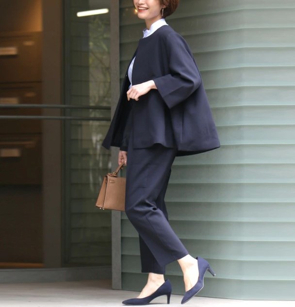 そのため、着回しのできるスーツスタイルやパンツスタイルが人気が高まっています。