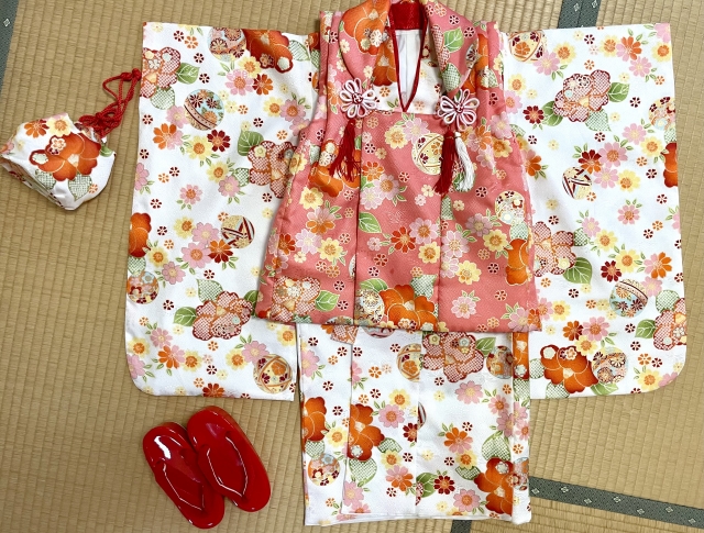 - 女の子:3歳は被布(ひふ)、7歳は四つ身着物