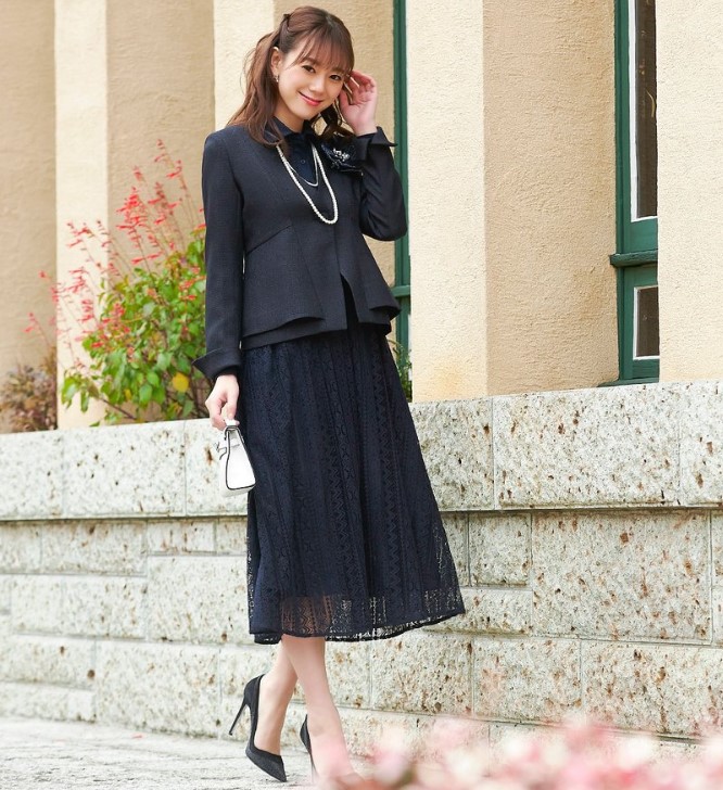 → ジャケットやパールアクセを添えるだけで、ぐっとフォーマルに見えます。 - 入卒式にも着回せる