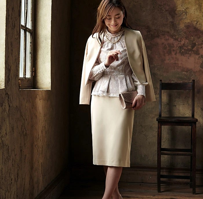 着回し力抜群のスカートタイプのセットアップは、式典だけでなく、仕事に普段着にとたくさん着回したいですね。